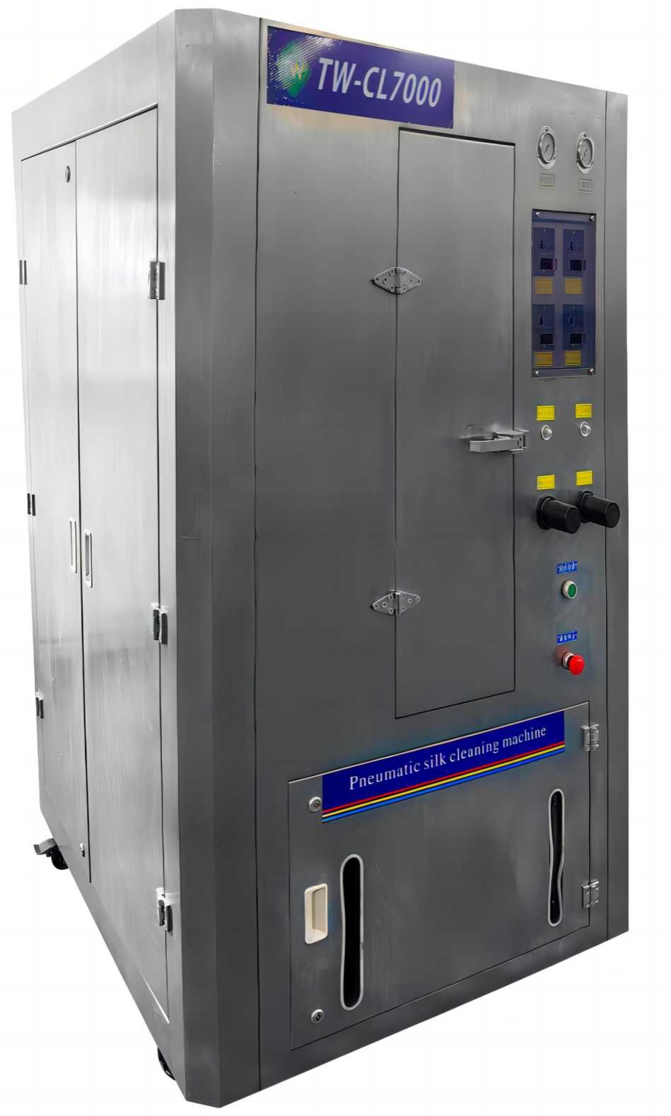 The TW-CL7000 Screen printing cleaning machine is designed for cleaning various types of screen plates, including large wire mesh, steel mesh, copper mesh, rubber mesh, and microporous mesh. It utilizes pure compressed air to drive a diaphragm pump, allowing for the recycling of the cleaning solution inside the machine, which achieves zero discharge of the cleaning agent. This machine effectively cleans and dries the screen, providing stable, safe, and efficient cleaning results.